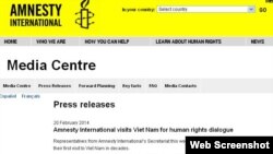Đại diện tổ chức Ân xá Quốc tế trong tuần này sang Việt Nam để trao đổi về nhân quyền tiếp nối chuyến thăm của Phó Giám đốc Văn phòng Ân xá Quốc tế tại Hoa Kỳ hồi tháng 3 năm ngoái.