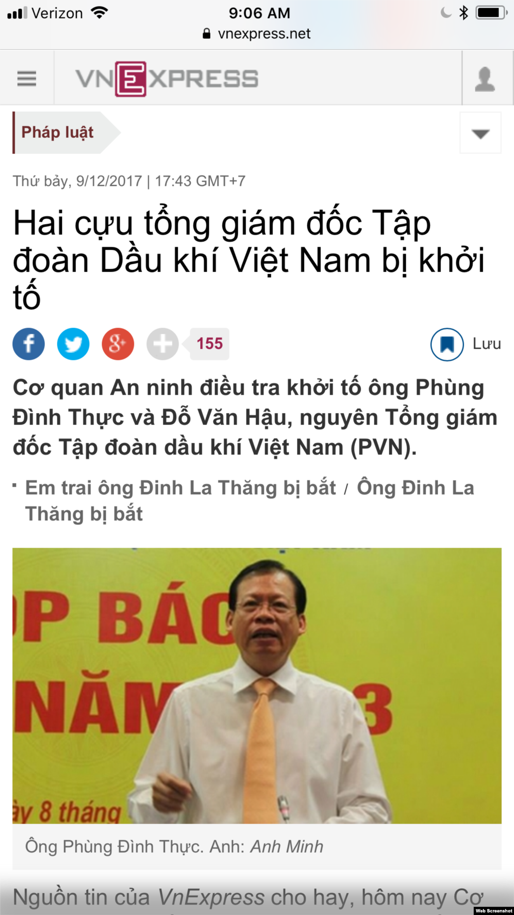 Truyền thông trong nước tối thứ Bảy đồng loạt gỡ các bản tin cho hay hai cựu tổng giám đốc của Tập đoàn Dầu khí Việt Nam (PVN) bị Bộ Công an Việt Nam điều tra khởi tố chỉ vài tiếng sau khi đăng lên như tin hàng đầu. Bộ Công an ra thông cáo phủ nhận tính xác thực của những bản tin này.