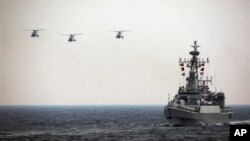 Ba chiếc tàu của Trung Quốc đã lên đường về hướng đông để tham gia cuộc diễn tập quân sự hiếm thấy với Hoa Kỳ, giữa lúc có nhiều căng thẳng về tranh chấp lãnh thổ tại Biển Đông.