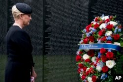 Đoàn xe của ông McCain đi từ Điện Capitol, nơi ông được quàn qua đêm. Trên đường đi, đoàn xe dừng lại tại Đài tưởng niệm Cựu chiến binh Chiến tranh Việt Nam, nơi vợ của ông McCain, Cindy, đặt một vòng hoa.