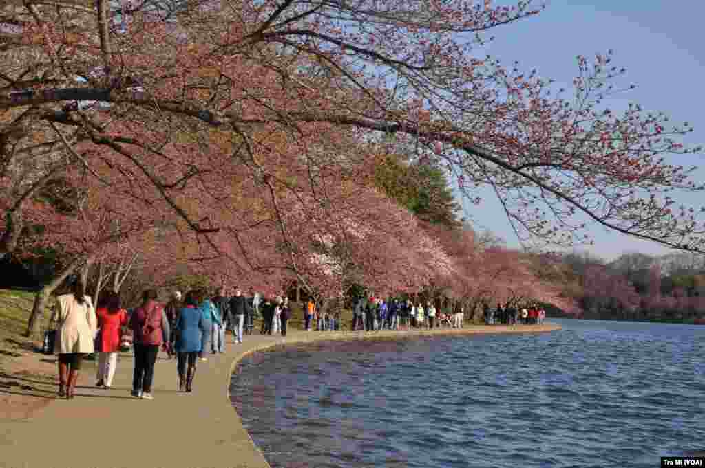Hàng năm có hơn 1,5 triệu du khách đổ về công viên Tidal Basin ở Thủ đô Washington, Hoa Kỳ để thưởng thức vẻ đẹp của hơn 3000 cây hoa Anh đào nở rộ cùng các sự kiện đặc sắc đi kèm như thả diều, diễn hành hay pháo hoa. Mời quí vị xem một số hình ảnh về hoa Anh đào ở thủ đô nước Mỹ do phóng viên Trà Mi chụp.