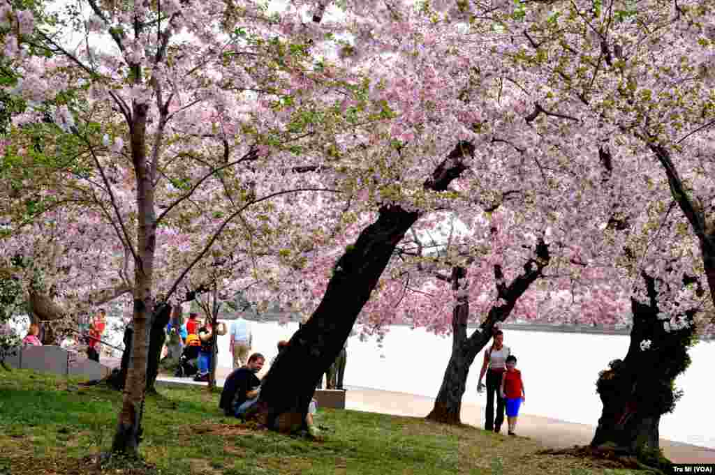 Hàng năm có hơn 1,5 triệu du khách đổ về công viên Tidal Basin ở Thủ đô Washington, Hoa Kỳ để thưởng thức vẻ đẹp của hơn 3000 cây hoa Anh đào nở rộ cùng các sự kiện đặc sắc đi kèm như thả diều, diễn hành hay pháo hoa. Mời quí vị xem một số hình ảnh về hoa Anh đào ở thủ đô nước Mỹ do phóng viên Trà Mi chụp.