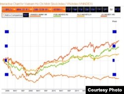 Trong khi đó thị trường chứng khoán Việt Nam vẫn đang tiếp tục vật lộn với cơn ác mộng kéo dài hơn 5 năm qua. So với thời điểm đen tối nhất hồi đầu năm 2009, VNINDEX chỉ tăng được vài chục phần trăm và so với mốc tham chiếu hồi đầu năm 2008, chỉ số VNINDEX vẫn mất khoảng 60% số điểm.