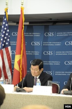Tại trụ sở CSIS hôm thứ Năm, ông Trương Tấn Sang nói, quan hệ Việt Nam-Hoa Kỳ đã “thực sự mở rộng và được nâng tầm về cả bề rộng lẫn chiều sâu”: