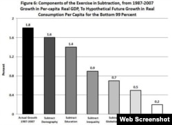 Nếu bất bình đẳng về thu nhập tiếp tục diễn biến xấu đi theo đúng chiều hướng của hai thập kỷ trước, thì Gordon cho rằng 99% dân cư Mỹ chỉ được kỳ vọng hưởng mức tăng GDP thực tế bình quân đầu người là 0.9%. Thế nhưng toàn cầu hoá sẽ tiếp tục tấn công vào tầng lớp trung lưu Mỹ, đưa kỳ vọng này xuống còn 0.7%. Các chỉ tiêu về năng lượng và môi trường của Mỹ kéo tiếp kỳ vọng này xuống còn 0.5%. Cuối cùng, quá trình giảm thâm hụt của cả chính phủ Mỹ lẫn người dân Mỹ sẽ làm cho kỳ vọng tăng trưởng của Mỹ trong giai đoạn 2007-2027 chỉ còn lại đúng 0.2%.