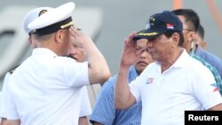 Ông Duterte đưa ra phát biểu này sau khi ra thăm một tàu chiến của Trung Quốc cắm neo ở thành phố Davao.