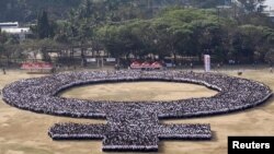 Các nhà tổ chức tại Manila cho phụ nữ đứng xếp hàng thành hình biểu tượng của nữ giới.