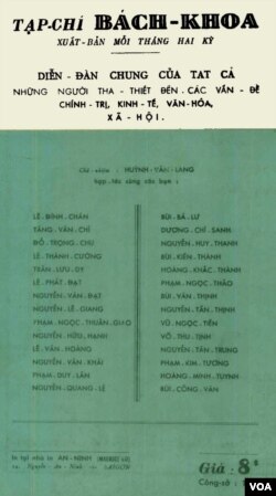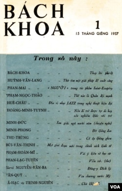 Và Bách Khoa Tạp chí đã ra đời. Số 1 phát hành ngày 15 tháng 1 năm 1957, người viết kiêm chủ nhiệm và chủ bút cho đến năm 1963 phải giao cho anh thư ký tòa soạn Lê Ngộ Châu, vì bị chế độ ‘người lính cai trị’ bắt đi bắt lại ba bốn lần giam giữ sau trước gần ba năm.”