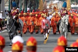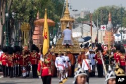 Linh cữu của cố Quốc vương Thái được rước ra khỏi hoàng cung trên chiếc xe ngựa vàng và trong tiếng tụng kinh của Vua Maha Vajiralongkorn và các thành viên trong hoàng gia.