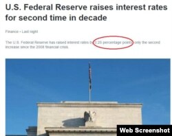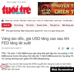 Ngày 14/12/2016 Cục Dự trữ Liên bang Hoa Kỳ (the Federal Reserve System) tăng lãi suất từ 0,5% lên 0,75%, tức tăng 0,25 điểm phần trăm (CNN viết rõ : Fed officials raised its target for short-term interest rates by 0.25 percentage points to a range of 0.50% and 0.75%.), thì sáng hôm sau 15/12/2016 bản tin kinh tế trên tờ Tuổi Trẻ viết sai như sau: “Sau khi Cục Dự trữ Liên bang Mỹ (FED) quyết định tăng lãi suất cơ bản thêm 0,25% lên mức 0,75% vào rạng sáng ngày hôm nay” (đúng ra phải viết 0,25 điểm phần trăm) - xem hình dưới.