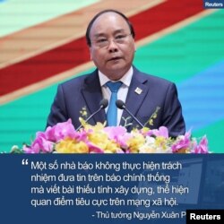 Trong buổi gặp mặt báo chí hôm 20/6 tại Hà Nội, người đứng đầu chính phủ Việt Nam gọi các nhà báo lão thành và những người đứng đầu các cơ quan báo chí là ‘đồng chí’, và ‘lưu ý’ họ rằng hiện nay “trên mạng xã hội có nhiều thông tin trái chiều với luận điệu sai trái, bị các đối tượng phản động lợi dụng”, theo truyền thông trong nước.