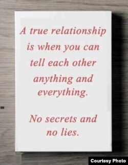 Một tình yêu đích thực là khi cả hai đều có thể kể cho nhau nghe về tất tần tật mọi vấn đề. Không giấu kín, không dối gian.