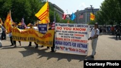 Cộng đồng người Việt biểu tình trước Tòa Bạch Ốc phản đối chuyến đi của TBT Nguyễn Phú Trọng và nói lên lập trường, quan điểm đối với chế độ CSVN hiện nay, đồng thời đòi hỏi chính phủ Mỹ đặt điều kiện nhân quyền, tự do dân chủ trong mọi cuộc đối thoại với chính phủ Việt Nam. (Ảnh: Khánh An- VOA)