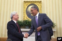 Tổng bí thư Nguyễn Phú Trọng nói hai bên "cũng trao đổi về những vấn đề vướng mắc như đàm phán và ký kết TPP, nhân quyền và các diễn biến mới trên biển Đông".