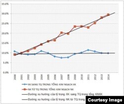 tổng kim ngạch XNK của Việt Nam giai đoạn 2000÷2014 – Nguồn: VOA