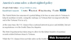 Trung Quốc hôm thứ Sáu (10 tháng 10) đã thể hiện sự phản đối đối với Mỹ về quyết định dỡ bỏ một phần lệnh cấm bán vũ khí cho Việt Nam, và gọi đây là hành động mang tính can thiệp và gây mất ổn định.