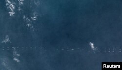 Hình ảnh vệ tinh chụp ngày 26 tháng 3, 2018 cho thấy tàu Trung Quốc ở phía nam Đảo Hải Nam. (Planet Labs/Handout via REUTERS )