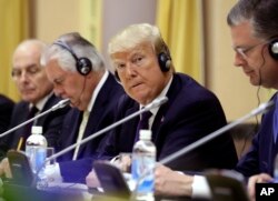Tổng thống Trump tham dự cuộc hội đàm song phương với Chủ tịch Quang tại Phủ Chủ tịch, Hà Nội.