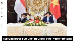 Hai ngoại trưởng của Việt Nam và Indonesia ký biên bản thỏa thuận hôm 24/4 theo đó hai nước nhắm mục tiêu đưa thương mại song phương lên 18 tỷ đô la hoặc hơn nữa vào năm 2028, Báo Điện tử Chính phủ của Việt Nam và trang web của Bộ Ngoại giao Indonesia cho biết.