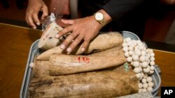 Giới chức hải quan Việt Nam cho hay 77 chiếc ngà voi giấu trong một lô hàng được khai là đồ dùng cá nhân bị phát hiện hôm thứ Ba.