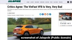 Trang Jalopnik mở đầu bài viết của họ với tiêu đề "Giới phê bình [xe] đều đồng ý: VinFast VF8 rất, rất tệ". Trang Road &Track rút tít "Lái lần đầu VinFast VF8 2023: Đơn giản là không chấp nhận được". Trang Green Car Reports thẳng thừng nói "Đừng mua VinFast VF8 2023 City Edition", còn dòng tít "Lần đầu lái VinFast VF8 2023 City Edition: Đơn giản là đừng" là của trang The Autopian.