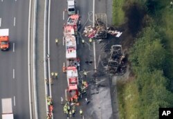 18 người thiệt mạng khi một xe buýt du lịch bốc cháy sau khi đụng vào một chiếc xe tải trên một xa lộ ở bang Bavaria, Đức, hôm thứ Hai (3/7), theo nguồn tin của chính phủ Đức.